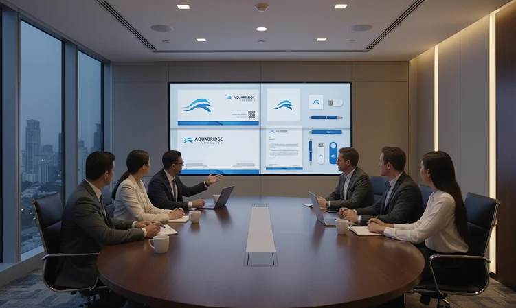 Complete corporate branding including stationery, presentations, and business materials for a professional brand presence.